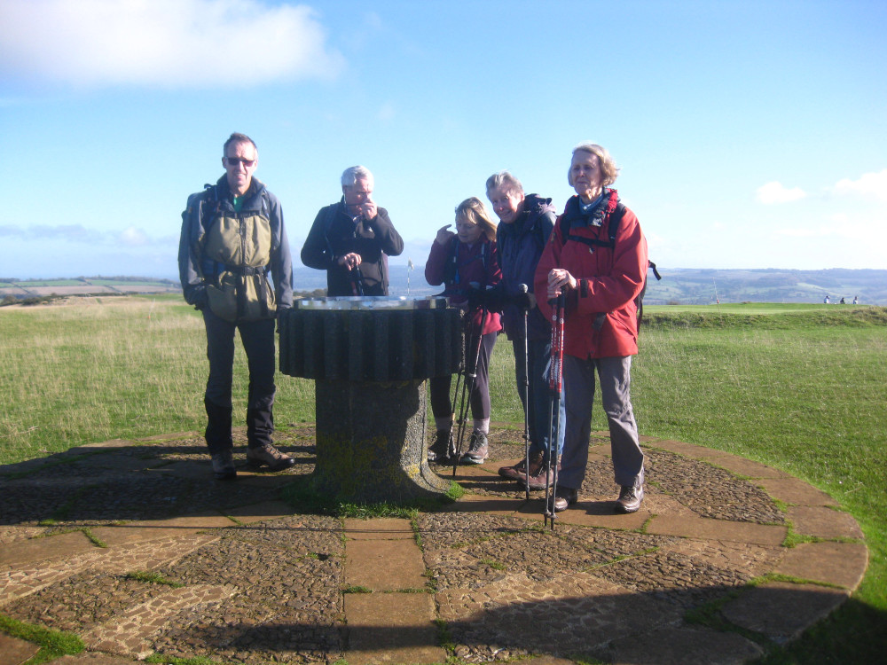 Starting in the carpark near Cleeve Hill Golf Club on a bright sunny day the walk started out on the Cotswold Way reaching the trig point and topograph on top of Cleeve Hill.