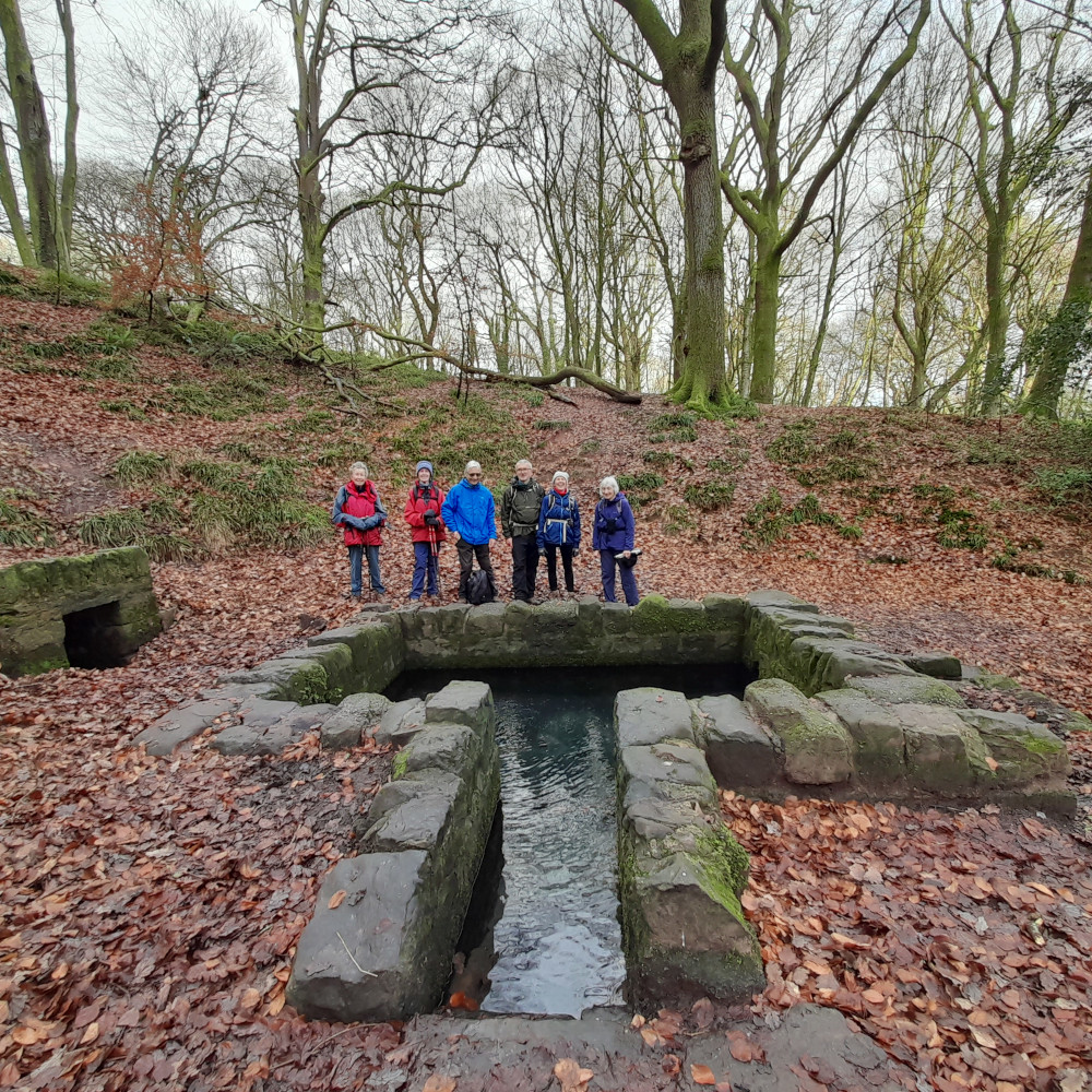 Dropping steeply through woodland we reached St. Anthony's Well. A spring of very cold water which runs directly from the hillside into the Well.