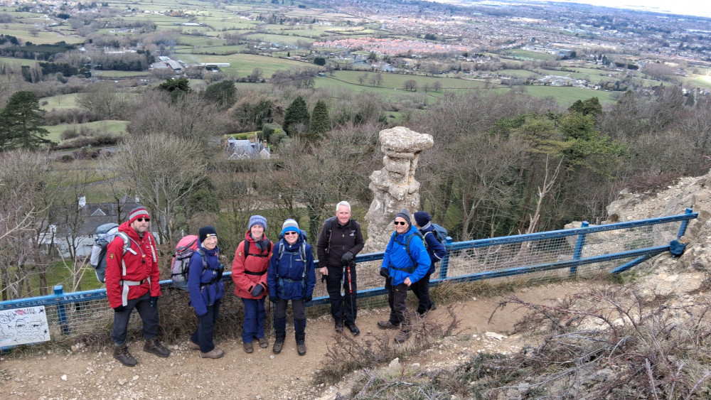 After coffee there was a steep climb up through the woods and on to Dolebury Warren Iron Age Hill Fort. Here it was clear that we had been sheltered from the winds, so we didn't stay long on the top.