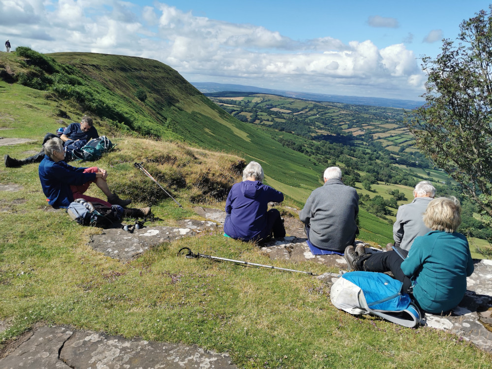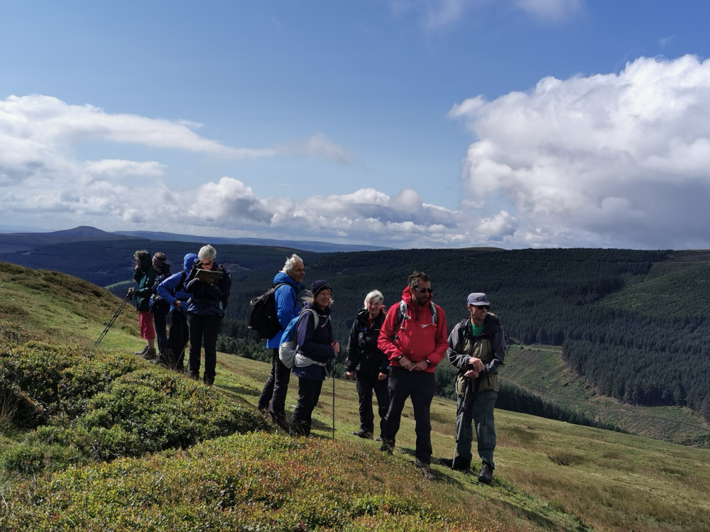 A group of 8 members set off from Black Hill car park. The weather was sunny but surprisingly cool due to a strong breeze. We followed the pretty tree-lined path, with many fords running down over it, in a Northerly direction through the Craswall Valley towards Hay Bluff stopping for coffee along the way.