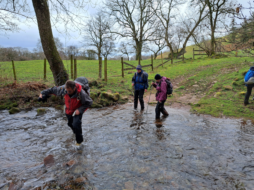 Visibility was limited by low cloud, while the rain of the previous few days ensured muddy conditions underfoot (and wet feet for few on the final river crossing before arriving back at the car park) but the rain stayed away and overall this was another enjoyable day in the hills.