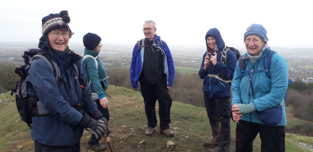 After coffee there was a steep climb up through the woods and on to Dolebury Warren Iron Age Hill Fort. Here it was clear that we had been sheltered from the winds, so we didn't stay long on the top.